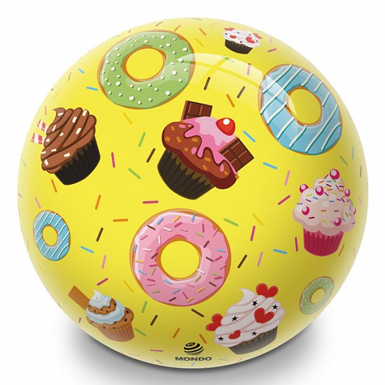 Potištěný míč plastový – potisk DONUT. Průměr míče je 140 mm, míč má certifikát bezpečné hračky. Jedná se o lehký potištěný míč s lakovaným povrchem, který zabraňuje odírání. Míč je vhodný i pro malé děti, protože je velmi lehký a zároveň odolný.