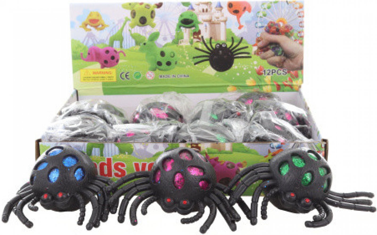 Antistresový mačkací míček ve tvaru pavouka,ze kterého vylézá hmota. Rozměr cca 13 x 7 cm. Věk 3+