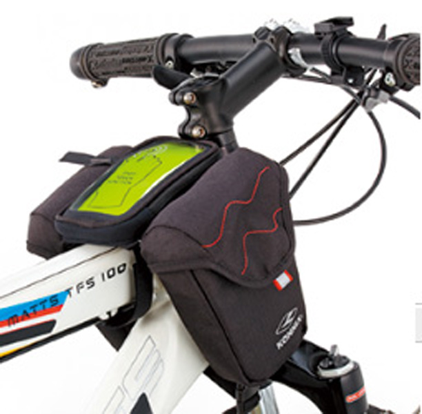 Trojdílná brašna ,rám vnitřní kapsy vyplněný pěnou, vnější kapsa je vybavena I-Touch systémem pro dotykové obrazovky (rozměr 6×11 cm),nepromokavý zip, montáž na suchý zip, velikost 11x4x14 (jedna brašna) objem : 0,8 l