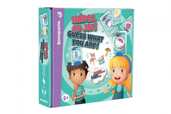 Zábavná společenská hra pro celou rodinu. Hra, která zaručeně rozesměje celou rodinu nebo partu přátel. Veselá hádací hra, při které si hráči nasazují čelenku s kartičkou a snaží se pomocí otázek uhodnout, kým nebo čím jsou. Formou hry si hráči osvojí 80 anglických slovíček. Nasaď si čelenku, vyber si kartu a pomocí otázek, na které ti mohou spoluhráči odpovídat pouze ANO nebo NE, zjisti, co je na obrázku. Cílem hry je nasbírat co nejvíce žetonů za správné odpovědi v limitu přesýpacích hodin. Rozměry balení 23 x 21 x 6 cm. Vhodné pro děti od 6 let.