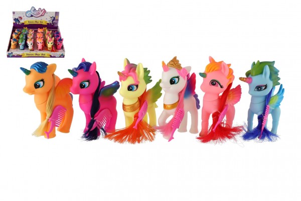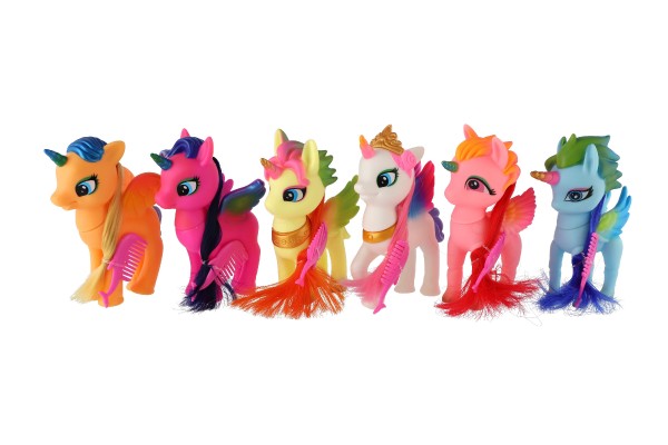Jednorožec s křídly česací plast 14cm s hřebenem 6 druhů