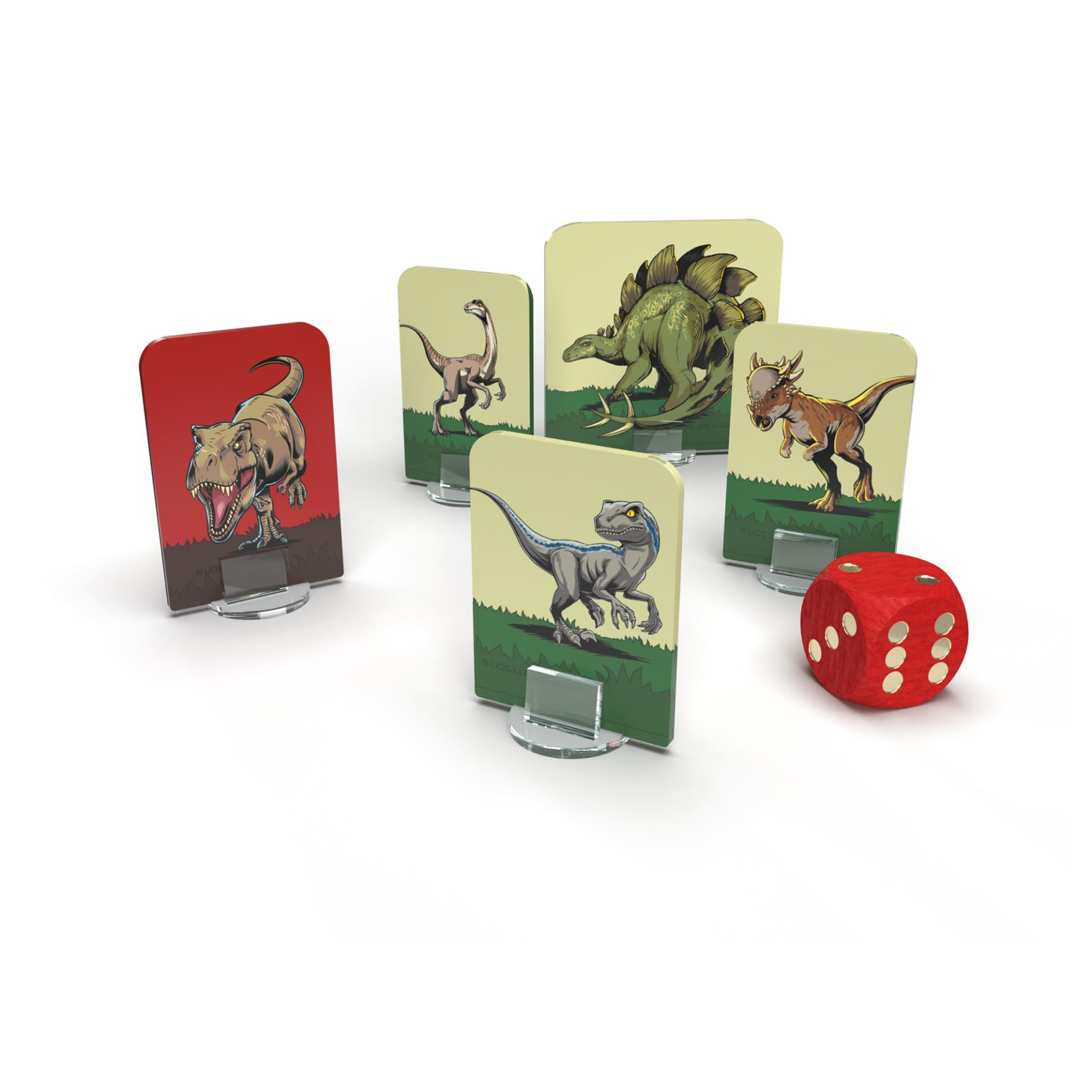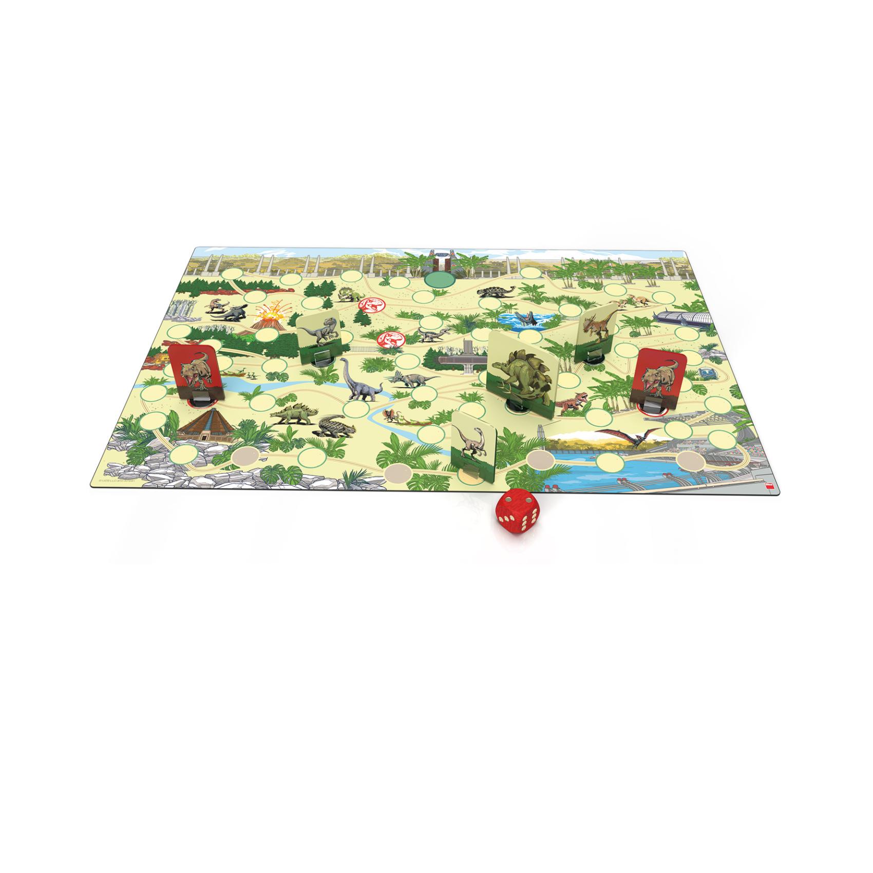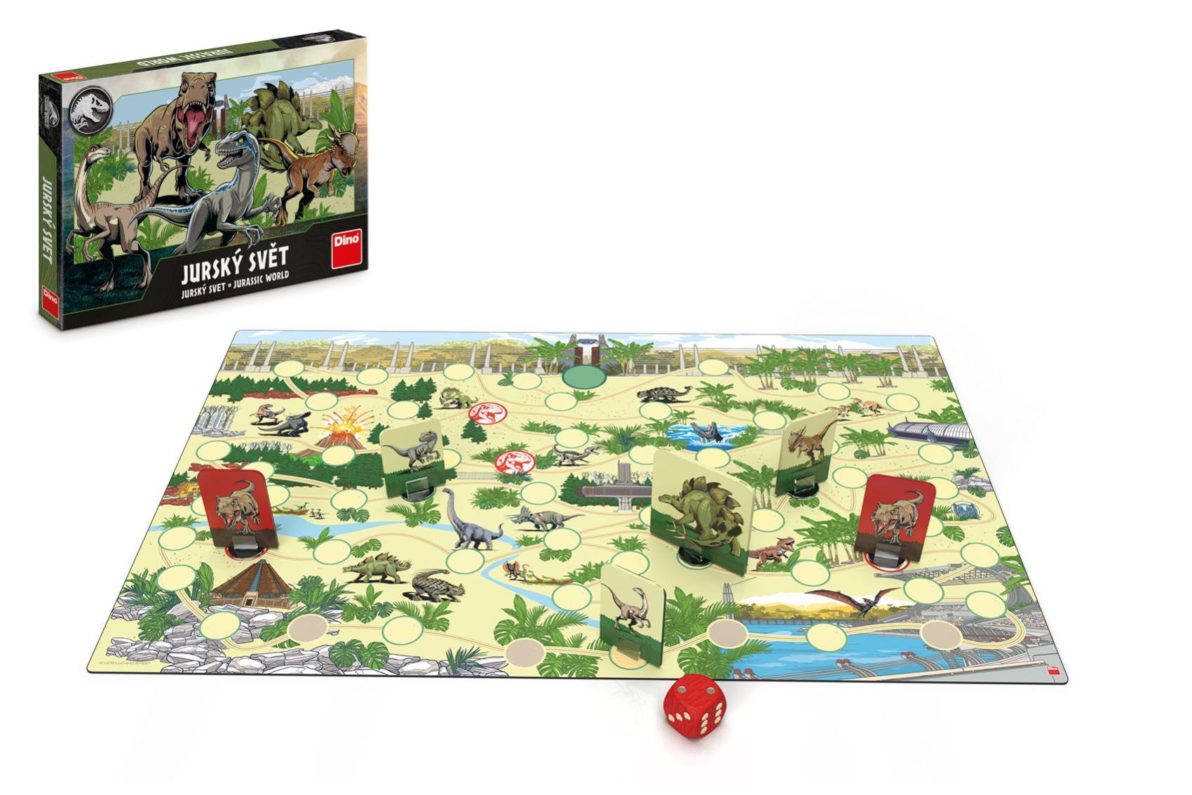 Dinosauři z oblíbeného seriálu Jurský svět utekli ze svých výběhů do džungle, kde se přes všechny nástrahy snaží vytvořit nový domov. Dávejte pozor nejen na hladového T-rexe, ale i na ostatní škodolibé dinousary protivníků. Vyhýbejte se překážkám a strategicky umisťujte nástrahy do cesty soupeřům tak, abyste se dostali do nového domova jako první. Hra obsahuje: 1 herní plán, 8 kartonových figurek se stojánky,1 hrací kostka,1 pravidla. Hra pro 2 až 4 hráče.