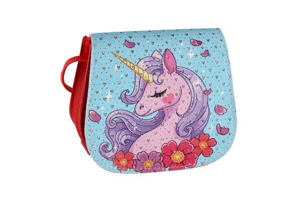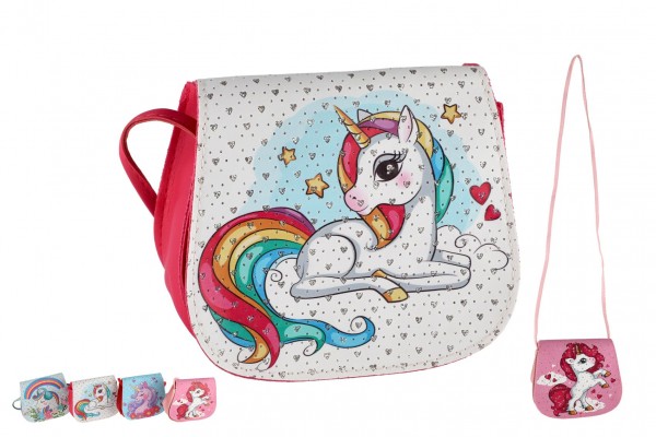 Kabelka/Taška jednorožec s kamínky plast 4 barvy v sáčku 17x15x3cm