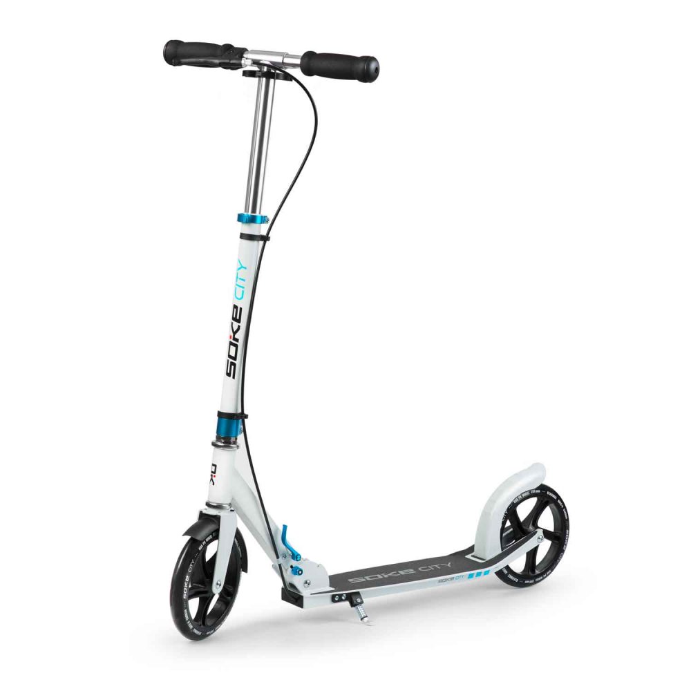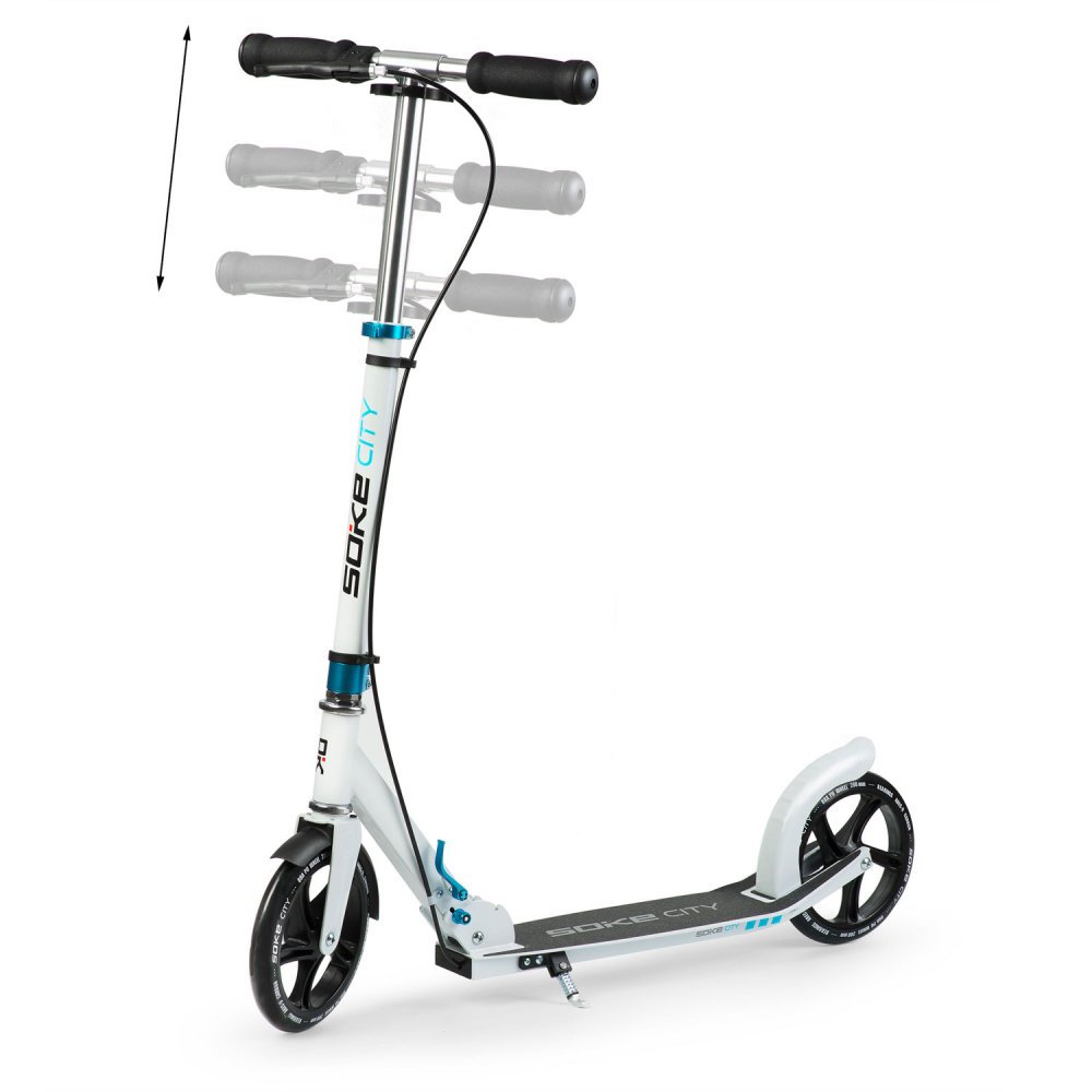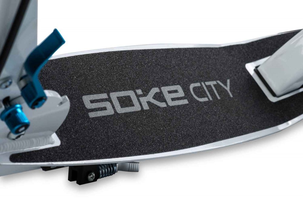 Městská koloběžka Soke City je určena k pohybu po městě. Výhodou koloběžek City je ruční páčková brzda na řídítkách, která zaručí rychlejší reakci při brzdění. Díky sklápěcímu mechanismu a přiloženému popruhu se snadno skladuje a přenáší.