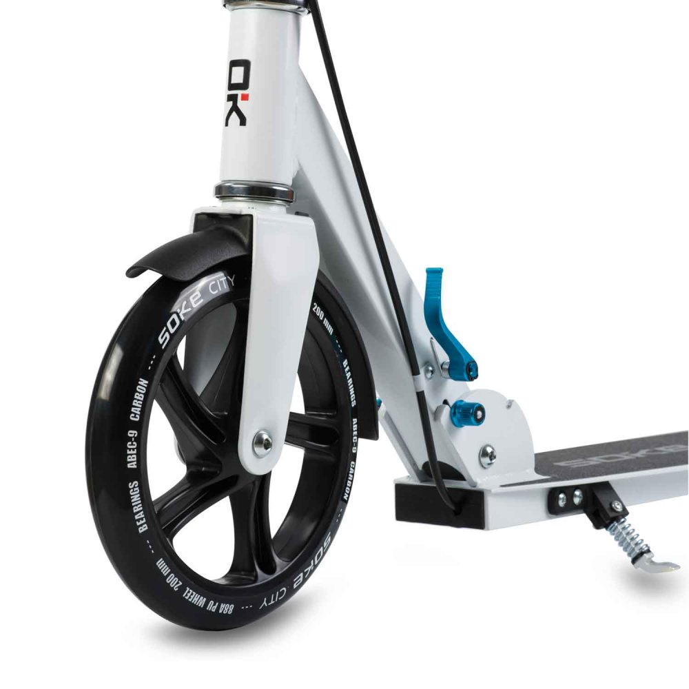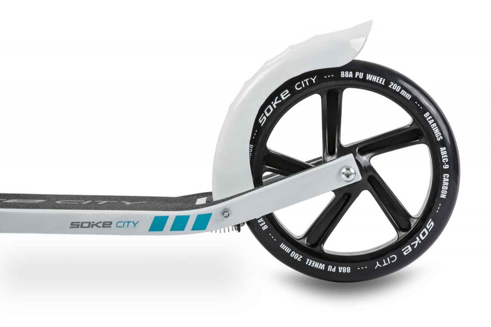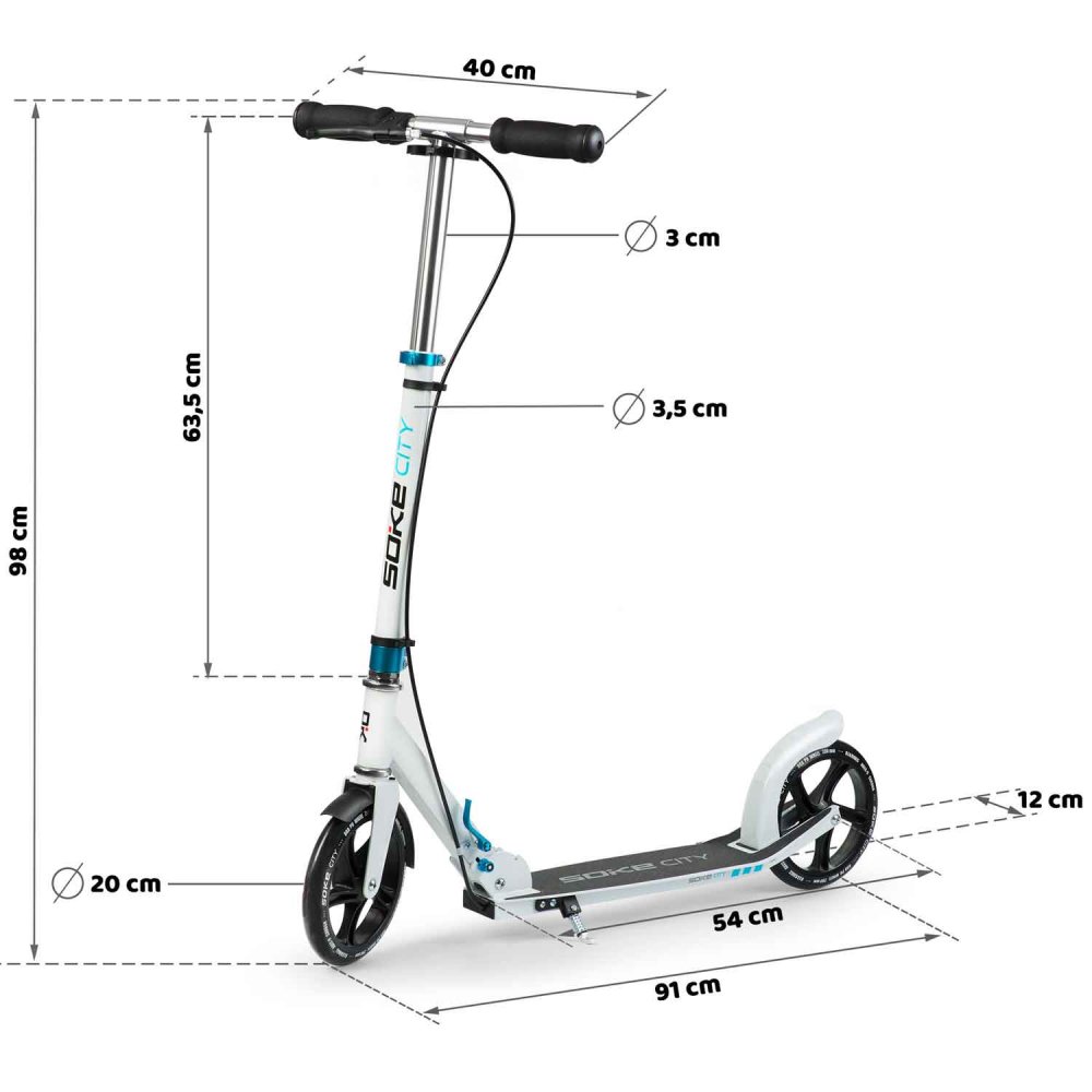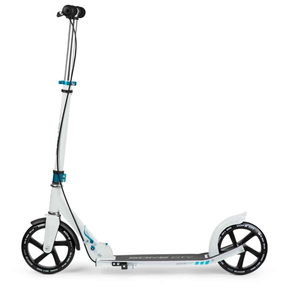 Městská koloběžka Soke City je určena k pohybu po městě. Výhodou koloběžek City je ruční páčková brzda na řídítkách, která zaručí rychlejší reakci při brzdění. Díky sklápěcímu mechanismu a přiloženému popruhu se snadno skladuje a přenáší.