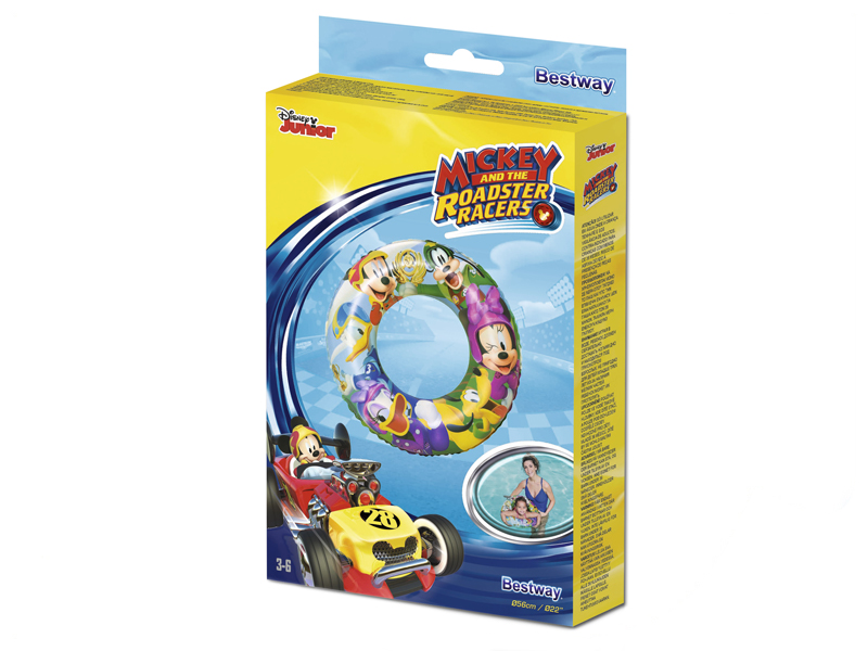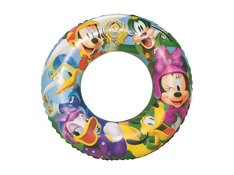 Nafukovací kruh Mickey Mouse má úžasné barevné provedení s potiskem oblíbených postaviček z Mickeyho klubíku. Rozměr kruhu je 56cm a je vhodný pro děti ve věku od 3 do 6 let. Děti se v něm budou cítit v bezpečí a plavání si o to více užijí