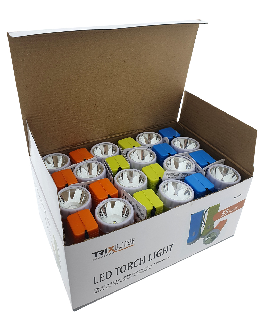 Praktická, lehká LED ruční svítilna TR-049L Trixline je napájena pomoci 2xAA tužkových baterií (nejsou součástí balení). K zapnutí slouží vypínač umístěný na těle svítilny. Tělo svítilny má obdelníkový tvar.