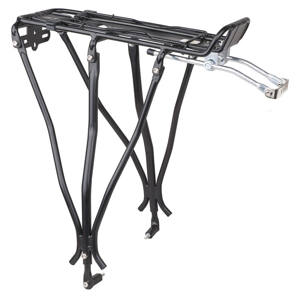zadní universální nosič na disc brzdy s klapákem ,26″-29″,masivní duté duralové trubičky 10mm ,nosnost 25 kg, kloubový upínací systém 3D, držák na odrazku (blikačku), hmotnost 1140g, rozměr horní plochy 34x14cm