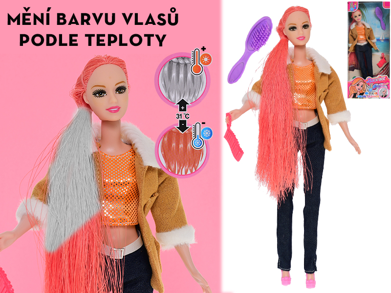 Panenka módní 29cm s vlasy měnící barvu a doplňky v krabičce – kožíšek