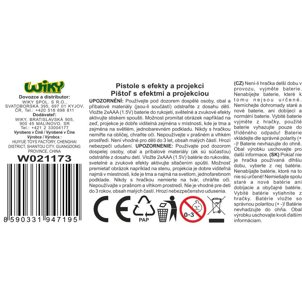 Světelné a zvukové efekty, projekce obrázku. 2xAAA baterie nejsou součástí.