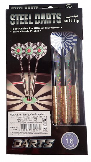 Šipky softové ORION (s plastovým hrotem) značky BROTHER – mosazné závaží 18g, nylonový shaft – 3 ks v plastovém pouzdru, příslušenství – náhradní hroty, letky