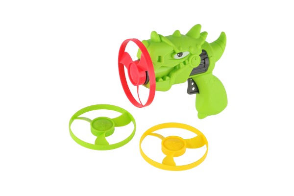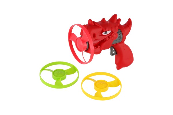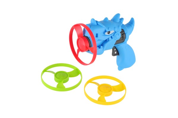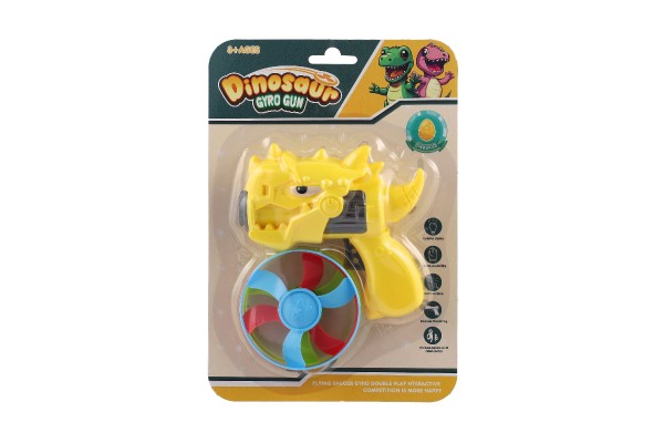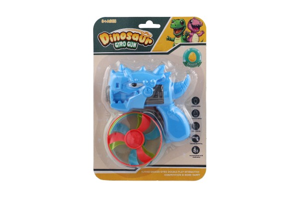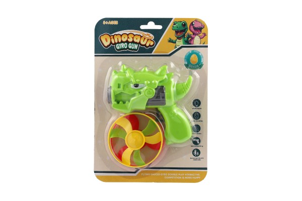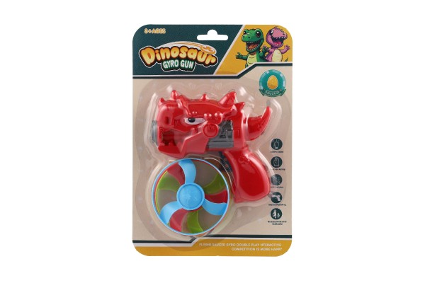 Vystřelovací vrtulka 3ks + startér pistole dinosaurus plast 4 barvy na kartě 15,5x24x5cm